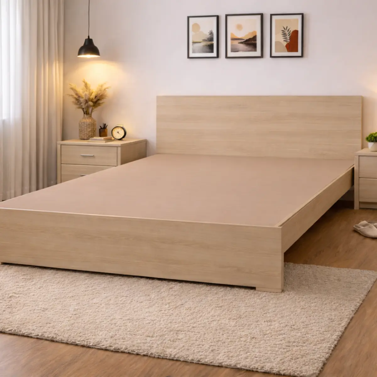 A sturdy bed with simple geometric shapes gives your room a sophisticated look…